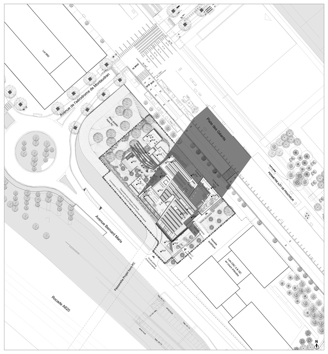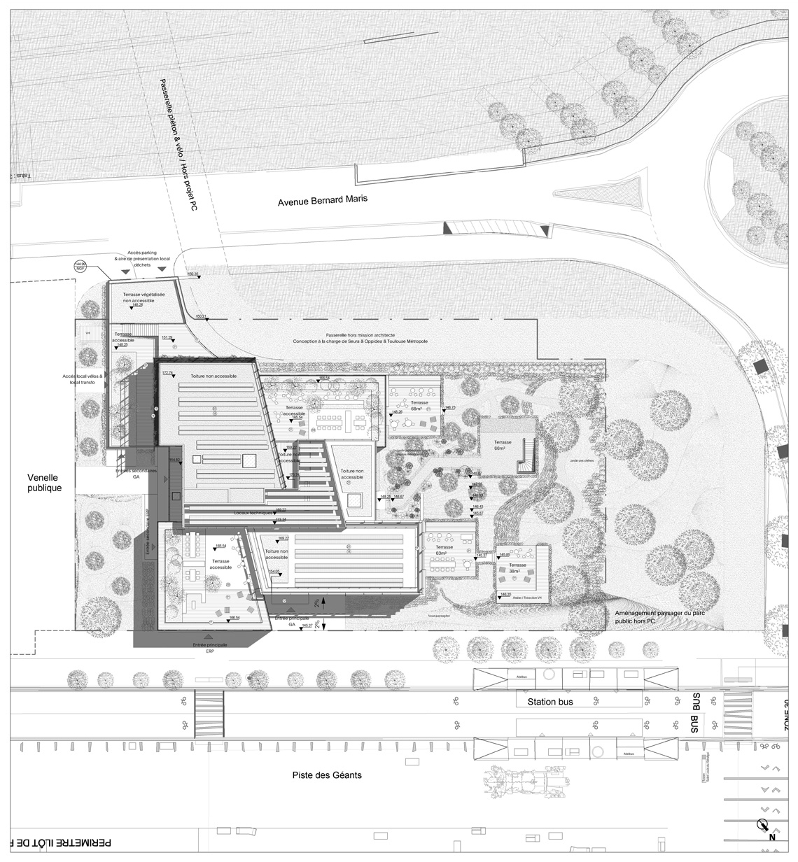 設計チーム: Tezuka Architects & Studio Montazami (Paris, France) ; Omega (CVC BE Structure) ; Equilab (BE CVC) ; Paquet Fontaine (BE Façades) ; Arcane Ingénierie (BE Structure Steel) ; Socotec (AMO Environment) ; Ossabois (BE Structure Timber) ; Studio Mugo (Landscape), Nature & Création (Landscape).